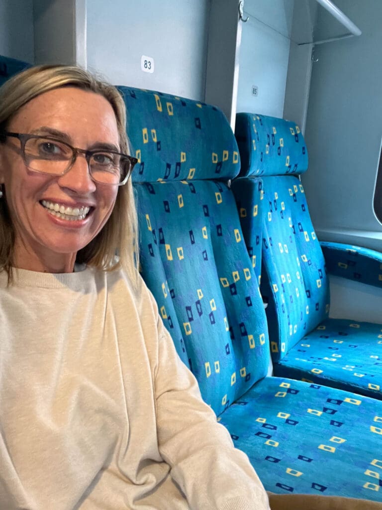 In my imperfect photo, I remember how I felt when it was taken. The warmth of the sunlight on my face as I squinted into the camera. The cool, refreshing raindrops that soaked my hair and clothes. Laughing into the wind as it whipped tangled strands of hair across my face. The excitement I felt when, in my exhausted-and-wearing-glasses-and-no-makeup state, I discovered I had a train car all to myself. The goofy outfit I wore because it was the only combo I had to keep me dry/warm/comfortable in inclement weather.